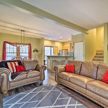 The 4-bedroom Camelback Mtn Ski Home With Deck-Near Waterpark!, set in Tannersville, is located a 15-minute ride from Kalahari Waterparks. A fully equipped kitchen with a microwave, fridges and kitchenware is included at the Tannersville villa so that guests can cook for themselves.