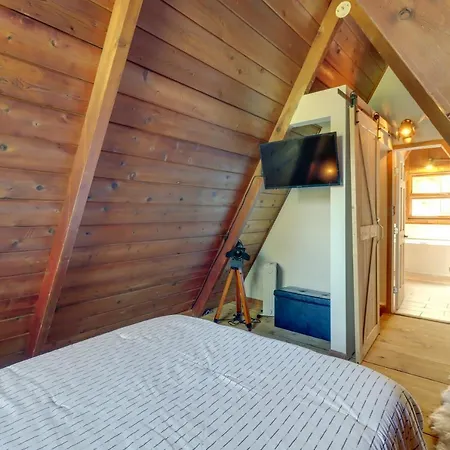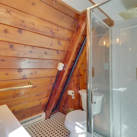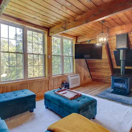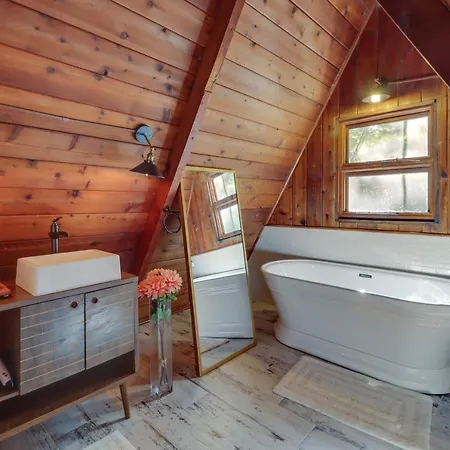 Secluded Poconos A-Frame Cabin With Hot Tub! is situated at a 4.3 km distance from St. Johns Church in East Stroudsburg and offers accommodation with a kitchen. The 2-bedroom villa is fitted with 3 bathrooms with a separate toilet, a bath and a shower.